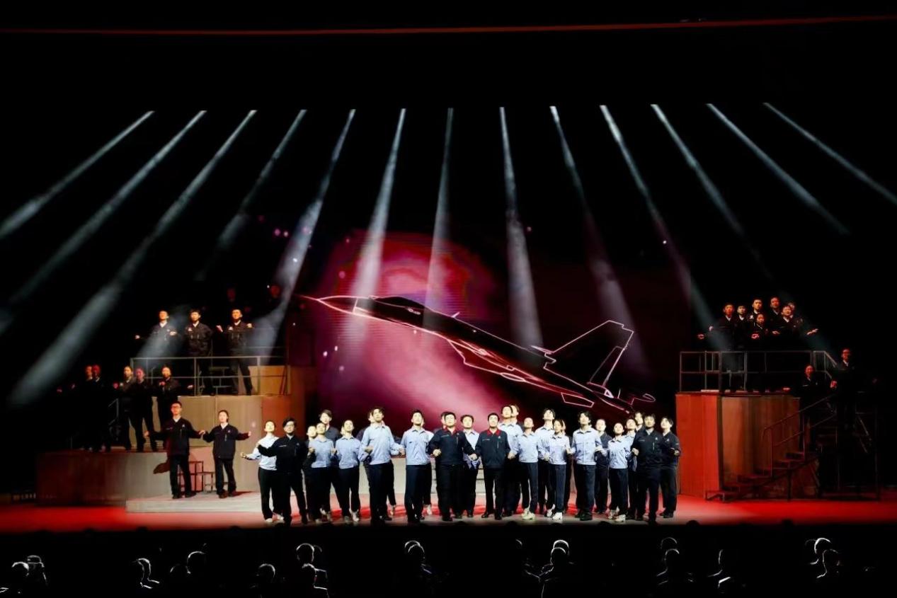 演出现场座无虚席,在场师生、校友聚精会神观看表演,从剧中汲取精神力量。演出结束后,观众纷纷表示“感受到了新中国航空工业的飞速发展,也体会到了‘国之重器,以命铸之’的责任与担当。”感慨英雄远行十年,罗阳精神永驻。