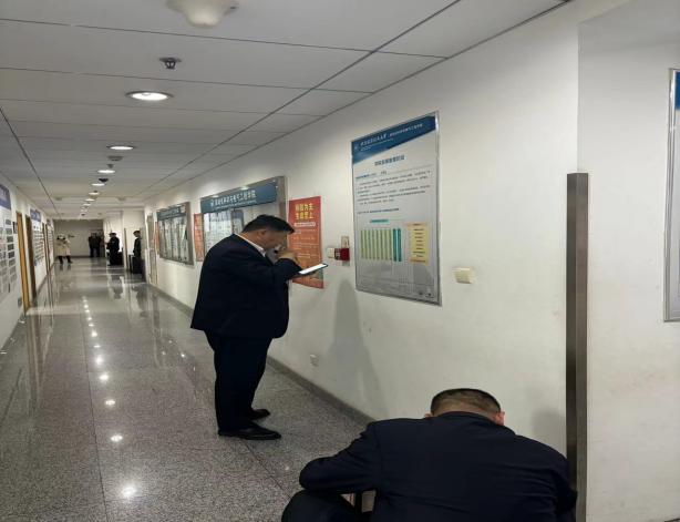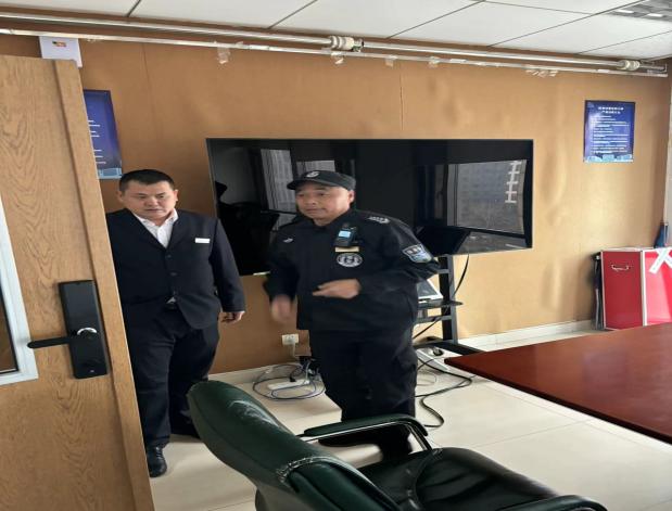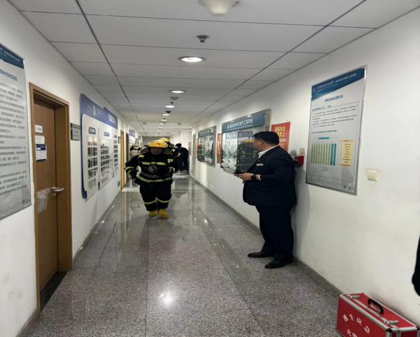 下午4时整,新主楼E座804房间模拟发生火情,新主楼物业中控室的消防主机突然接收到了E座8层的手动报警按钮的报警信号,中控室马上通知距离最近的巡视人员跑点核实,发现E座8层804房间烟雾较大,巡视员立即向中控室报告请求微型消防站支援,中控室通知微型消防站出动进行模拟初期火灾扑救,并模拟拨打“119”报警。鉴于火势蔓延较快,为保障楼内人员的安全,决定对E座1至11层的全部人员进行紧急疏散。
