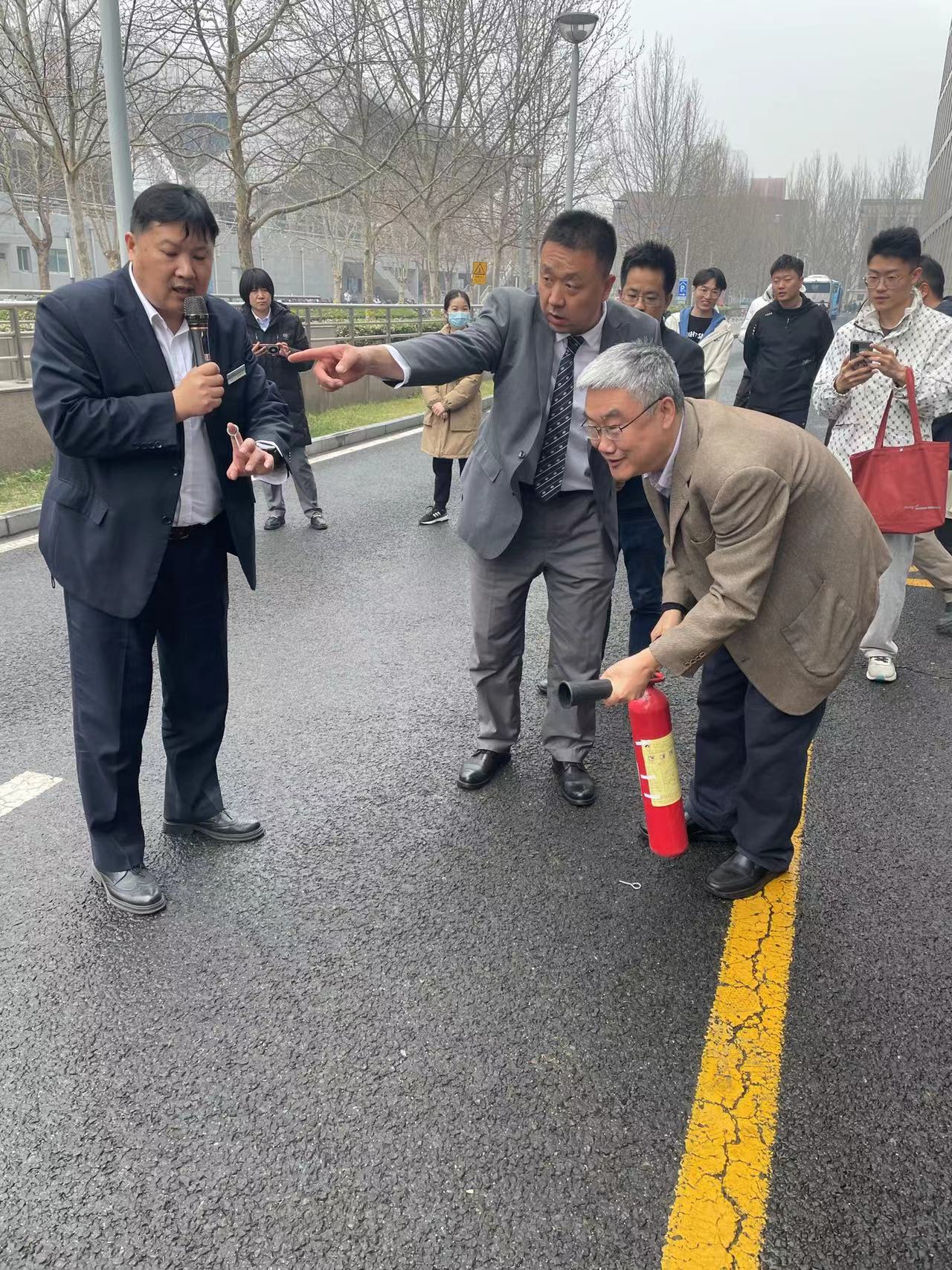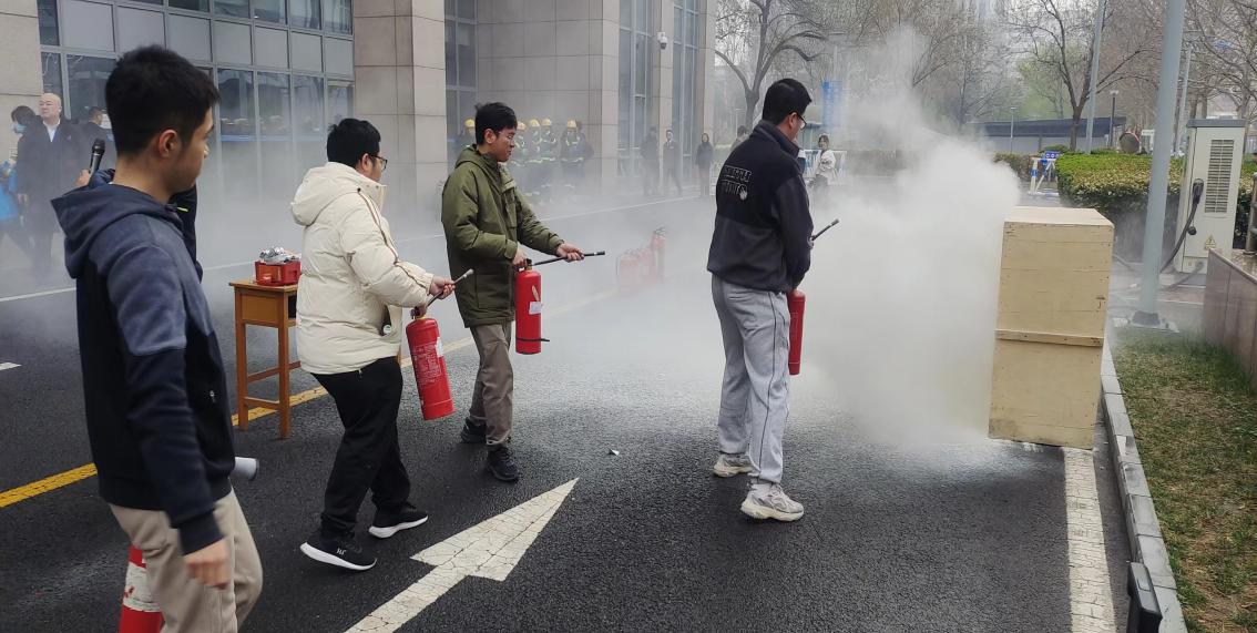 应急疏散演练结束后,全体师生参加了新主楼物业组织的消防安全培训。物业王剑详细讲解了消防设备常识,灭火器的正确使用方法和步骤、适用范围及操作时的注意事项,并现场进行了示范。在专业人员的指导下,师生们积极踊跃地依次亲自上手进行了灭火器的实操演练,进一步巩固了消防安全知识,提高了实战技能。