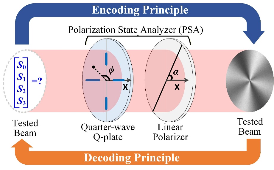 前向编码:通过课题组自主研发的Vortex-PSA模块,将待测偏振信息转化为几何特征鲜明的涡旋特征图案,实现全偏振信息的编码。