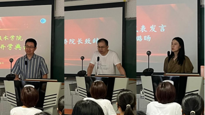 学院开学典礼。9月6日上午,信科学院新生开学典礼在国际大厦427教室举行,典礼由党总支书记郭华伟主持。院长蔡连侨由大数据发展下计算机学科的新机遇出发,对新生提出谆谆教导,希望同学们“树立大志向,确立小目标”、“拥有大智慧,避免小聪明”、“建立大格局,减少小确幸”。教师代表李璐旸结合“专业前景”和“时代浪潮”向新生表达了殷殷期许。